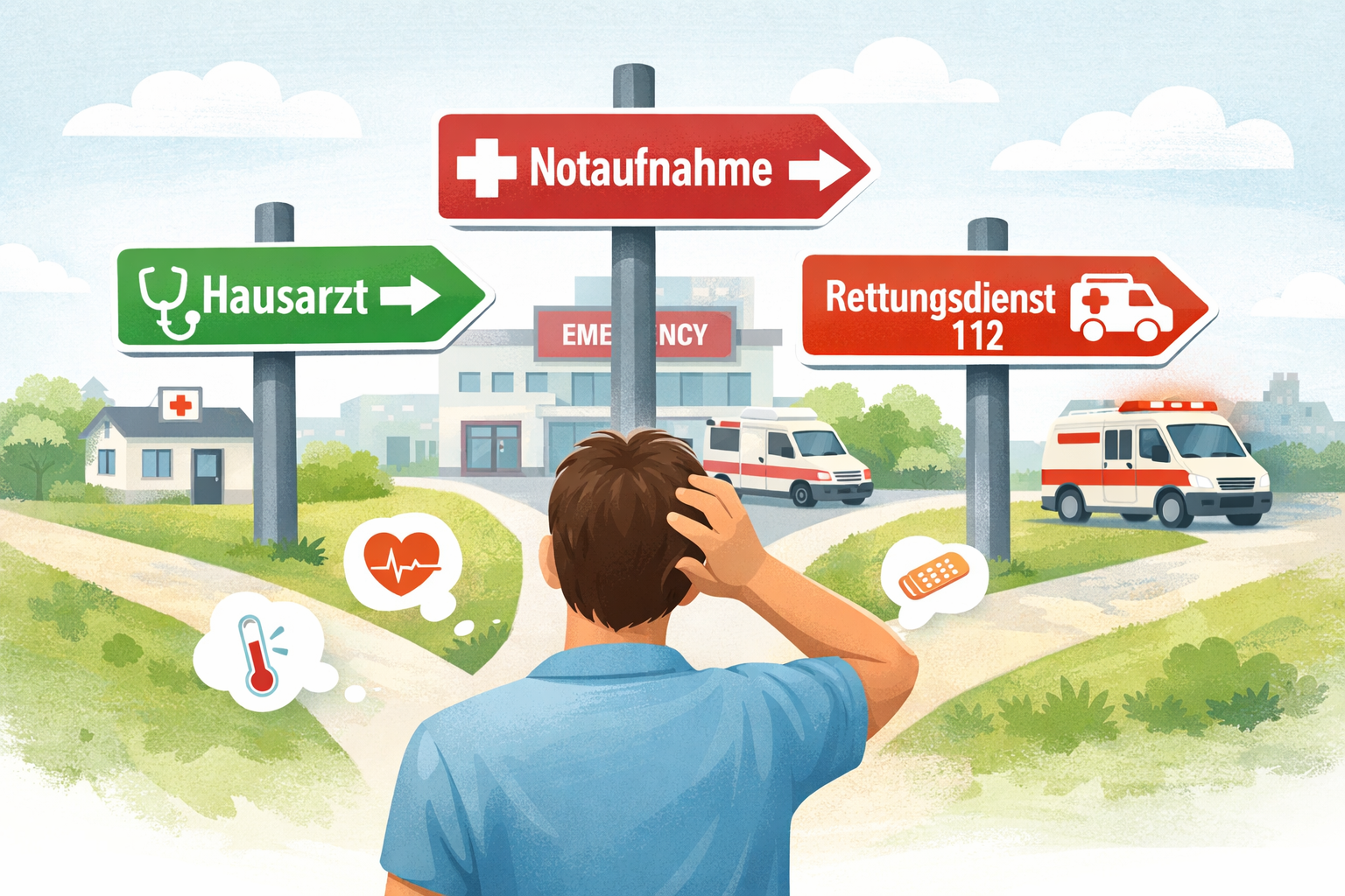 Viele Menschen stellen sich bei gesundheitlichen Beschwerden eine ganz praktische Frage, ob sie zum Hausarzt gehen, in die Notaufnahme fahren oder den Rettungsdienst rufen sollten.